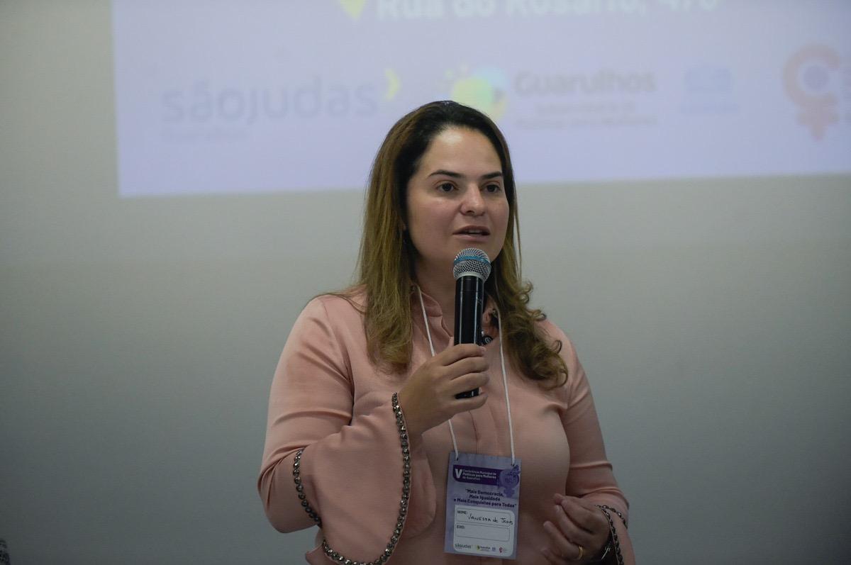 Nesta sexta-feira (27) a 5ª Conferência Municipal de Políticas para as Mulheres “Mais Democracia, Mais Igualdade e Mais Conquistas para todas” reuniu uma plateia de mais de 150 mulheres no auditório da Universidade São Judas Tadeu, na Vila Camargos. A subsecretária de Políticas para as Mulheres, Vanessa de Jesus, participou da abertura juntamente com a primeira-dama e presidente do Fundo Social de Solidariedade, Caroline Sanches, a presidente do Conselho Municipal de Políticas para as Mulheres (CMPM), Simone Lima, representantes do Legislativo Municipal, entre outras autoridades.