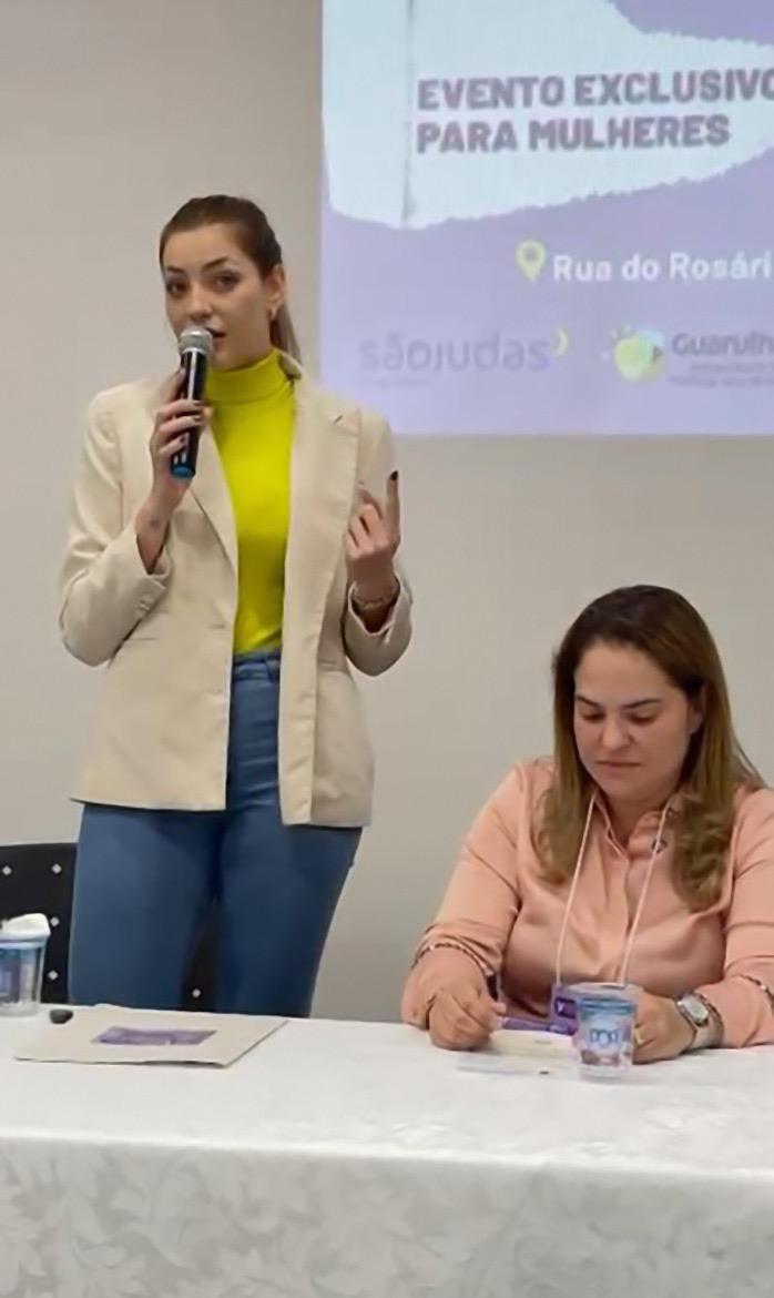 Já a primeira-dama colocou o Fundo Social de Solidariedade (FSS) à disposição das mulheres, o qual irá atuar para estimular o empreendedorismo feminino como forma de geração de renda familiar. “Fui órfã de pai a partir dos 12 anos e minha mãe teve que aprender a se virar. Sei da força das mulheres porque a acompanhei de perto. Estou aqui hoje para lutar por mulheres como ela. É importante que a mulher saiba empreender e muitas vezes com o mínimo. O FSS está de portas abertas e em parceria com o grupo das Maras, da ONG Gerando Falcões, vamos atuar em toda Guarulhos para que as mulheres que não sabem como começar consigam ter suas próprias rendas”, disse Caroline.