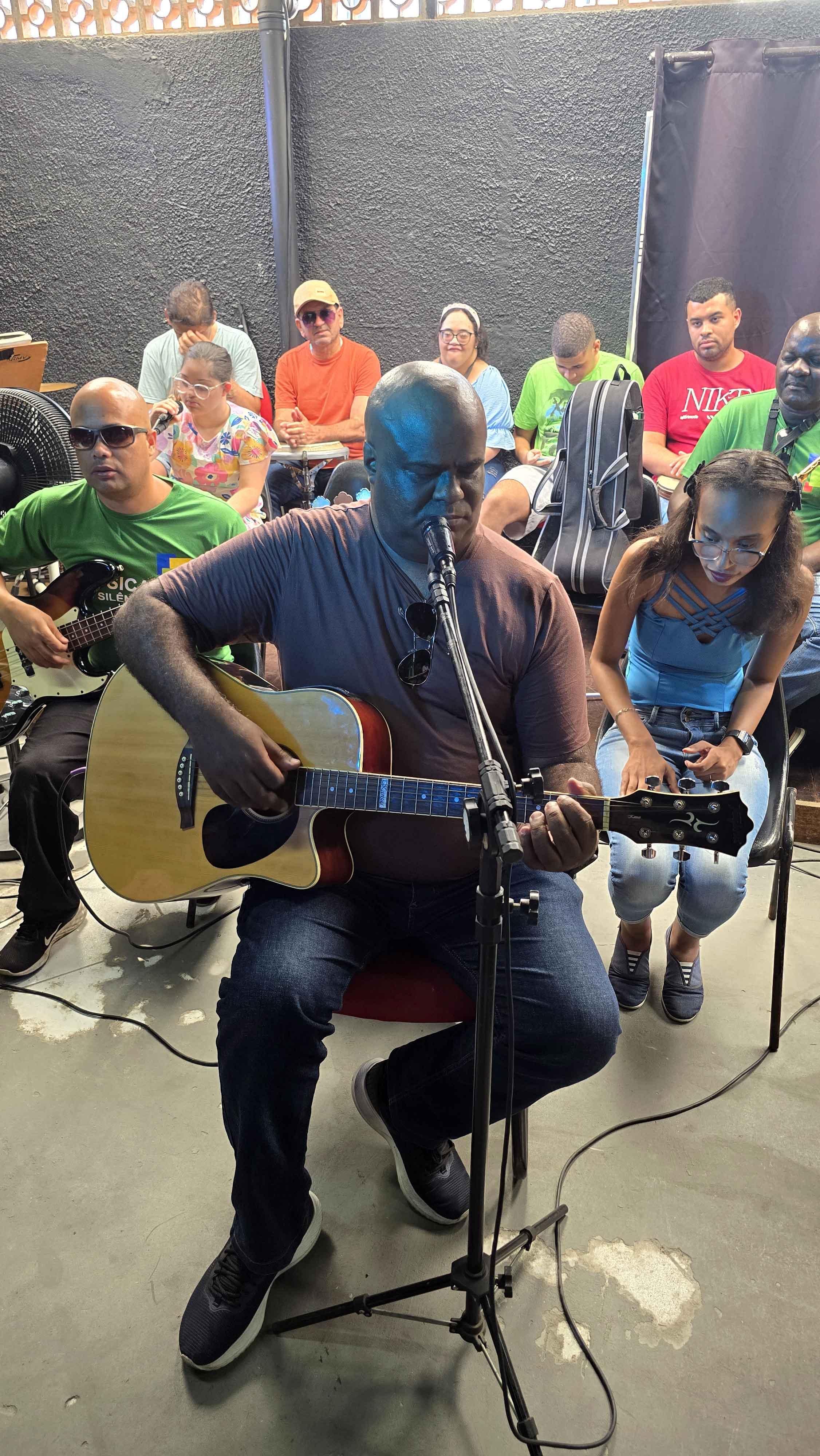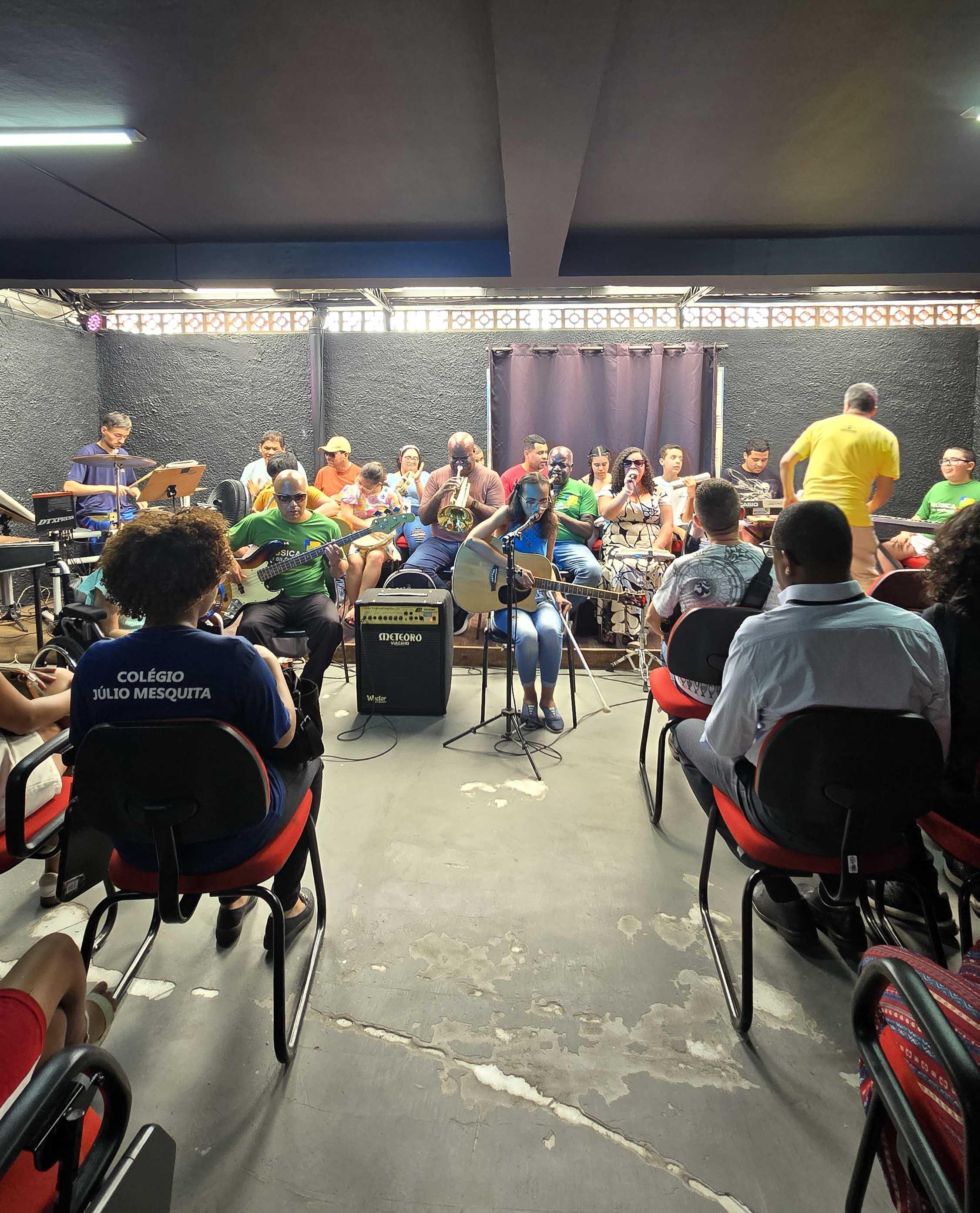 Na tarde de quarta-feira (3), a banda Música do Silêncio subiu ao palco levando o poder da música como linguagem universal de inclusão e conexão. Formado por alunos do Conservatório Municipal de Artes de Guarulhos, o grupo é composto por pessoas com deficiência visual, autismo e Síndrome de Down, e atraiu mais de 80 pessoas para apreciar um concerto pensado especialmente para a apresentação de final de ano.