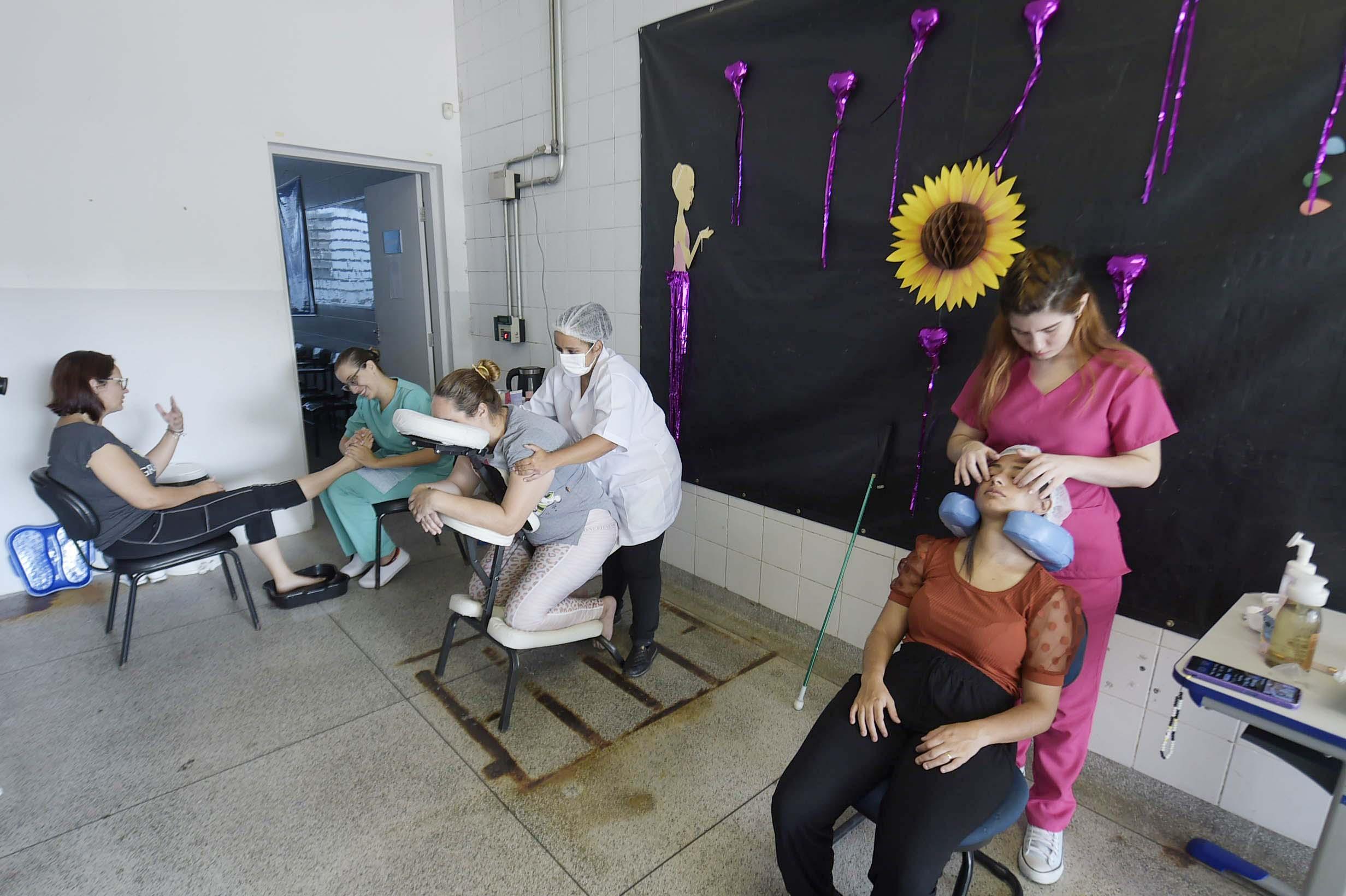 Entre os benefícios da prática, apontados pela voluntária, que está concluindo o curso técnico de massoterapia do Senac, estão a possibilidade de relaxar, desestressar e proporcionar uma sensação de bem-estar.
