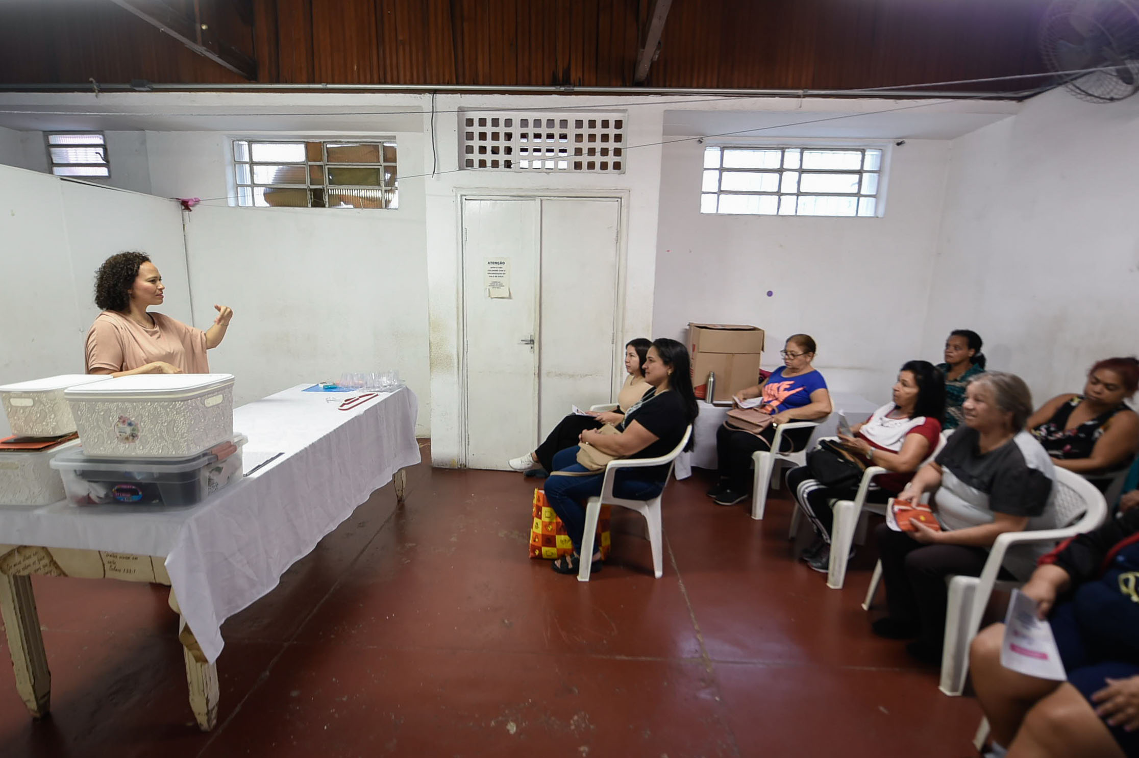 A aula foi ministrada pela voluntária formada em administração de empresas, Fabiana Hermínia dos Santos, que atua como personal organizer há nove anos, após trabalhar por 20 anos na área comercial de indústrias. Ela considera a atividade como um bom mercado de trabalho, sendo necessário também que a profissional use as redes sociais para se tornar conhecida e obter clientes.