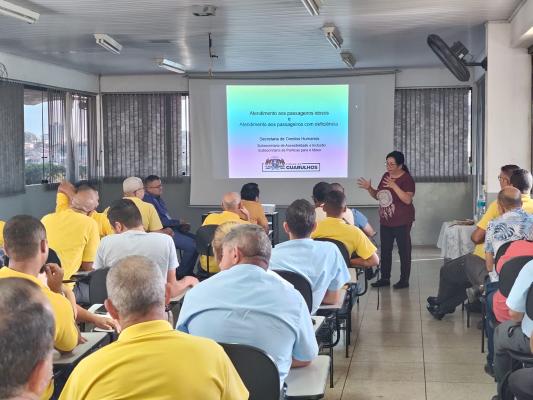 Na última sexta-feira (8) a Prefeitura de Guarulhos promoveu uma formação sobre o atendimento a idosos e pessoas com deficiência que utilizam o transporte coletivo para cerca de cem condutores de ônibus da Viação Campo dos Ouros, na sede da empresa. A ação conjunta das subsecretarias de Acessibilidade e Inclusão (SAI) e de Políticas para o Idoso (SPI), integrantes da Secretaria de Direitos Humanos, visa a contribuir para a melhoria do atendimento a esses públicos que, muitas vezes, possuem mobilidade reduzida e necessitam de acolhimentos diferenciados.