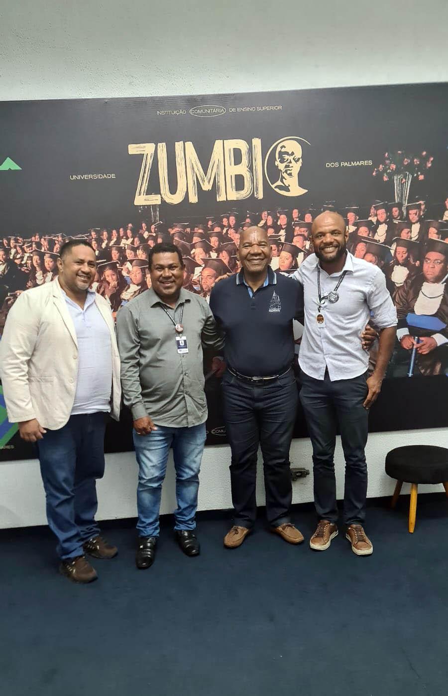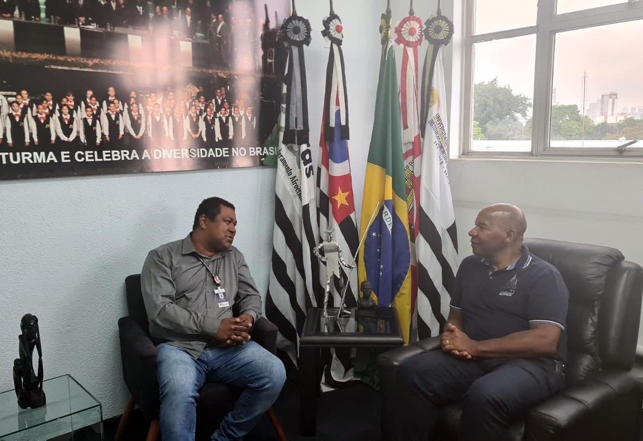 Nesta terça-feira (18) o subsecretário da Igualdade Racial de Guarulhos, Jorge Caniba Batista dos Santos, e o diretor de Gestão de Igualdade Racial, Joildo Souza, se reuniram com o reitor da Universidade Zumbi dos Palmares, José Vicente, e o diretor da instituição de ensino, José Alberto Saraiva Fernandes, para discutir a possibilidade de formalização de uma parceria com o objetivo de ampliar o acesso à educação para a população negra e de baixa renda na sede da universidade, em São Paulo.