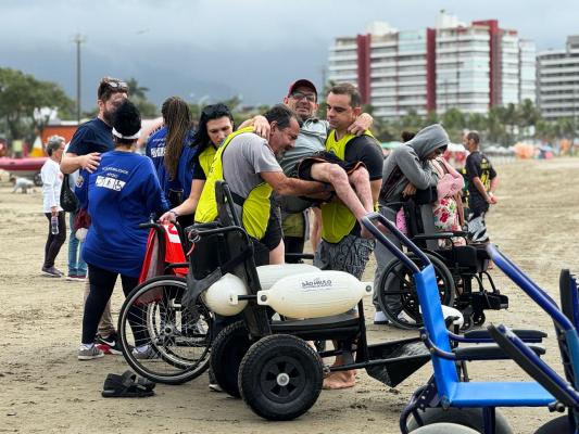 A Subsecretaria de Acessibilidade e Inclusão, em parceria com o Fundo Social de Solidariedade, levou neste sábado (24) uma turma de 60 participantes, entre pessoas com deficiência, acompanhantes e funcionários da pasta, para um banho de mar e diversas atividades de lazer na praia de Bertioga. A ação da Prefeitura de Guarulhos faz parte do 21º Praia Acessível, evento promovido pela ONG Onda BGF.
