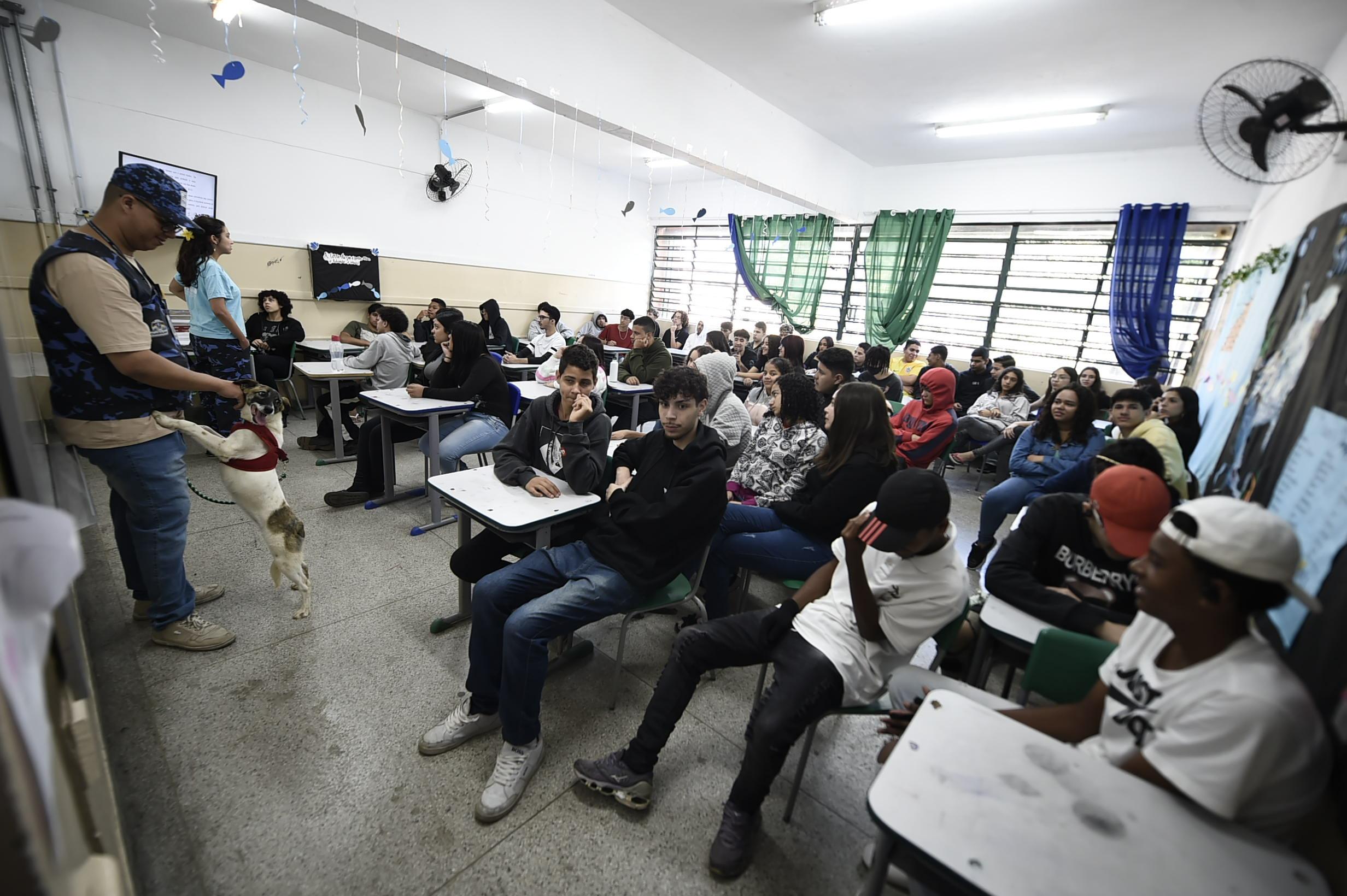 Por sua vez, Miguel Monteiro Fontes, de 16 anos, assistiu a palestra sobre proteção animal e a apresentação do canil da GCM. “Foi muito boa a explicação sobre como devemos cuidar e tratar nossos animais. Falaram sobre doenças de animais que não conhecia”, contou o estudante, que apreciou a ação dos GCMs com o cão. “Nunca tinha visto o canil e as simulações. Ela mostrou como o cachorro ajuda policiais no dia a dia”, completou o estudante do 1º ano do ensino médio que vislumbra fazer faculdade de mecatrônica.