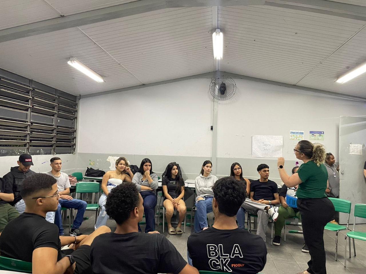 Na noite desta quinta-feira (13), a Subsecretaria da Juventude promoveu o projeto Juventude na Escola para aproximadamente 200 alunos do ensino médio da E.E. Prof.ª Zilda Romeiro Pinto Moreira da Silva, localizada no Jardim Presidente Dutra.