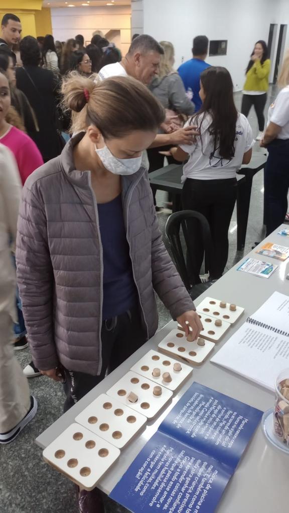 O público presente pôde também conhecer jogos adaptados como forma de sensibilização e reflexão sobre a inclusão de pessoas com deficiência.