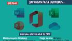A Prefeitura de Guarulhos recebe até o dia 3 de abril as inscrições do público LGBTQIAP+ interessado em participar dos cursos profissionalizantes gratuitos presenciais ministrados pela Escola Senai Guarulhos (avenida Dr. Renato de Andrade Maia, 601, Jardim Paraventi): Rotinas Administrativas (32 vagas) e Pacote Office (20 vagas). Até o dia 20 junho é possível se inscrever ainda para o curso Operador de Logística (32 vagas).