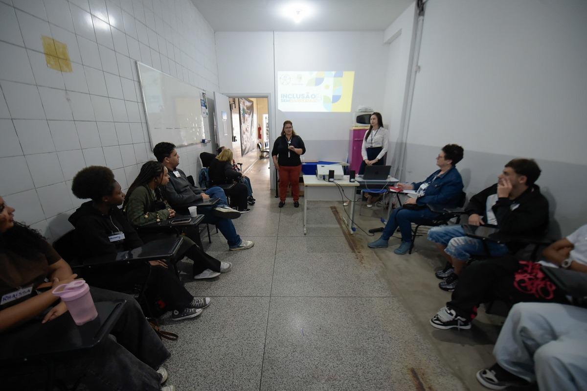 A Prefeitura de Guarulhos promoveu nesta quinta-feira (5) a oficina do projeto Inclusão sem Barreiras para 23 estudantes com idades de 16 a 20 anos, do curso de Aprendizagem do Senac, do Projeto Jovem Aprendiz, na sede da Subsecretaria de Acessibilidade e Inclusão, no Macedo.